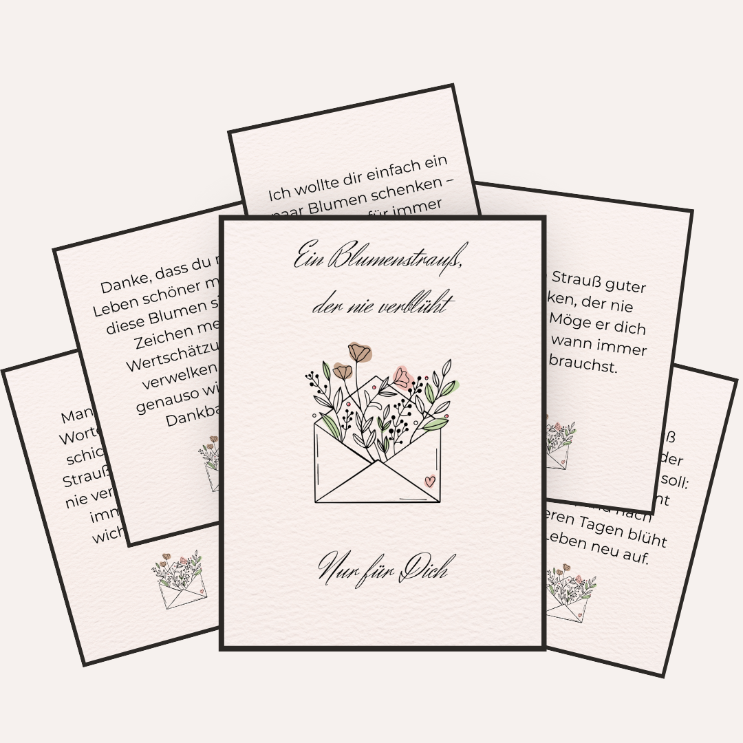 Bringe mit diesen Karten Leichtigkeit, Freude und ein Lächeln in den Alltag deiner Liebsten – und das jederzeit aufs Neue! 🌸