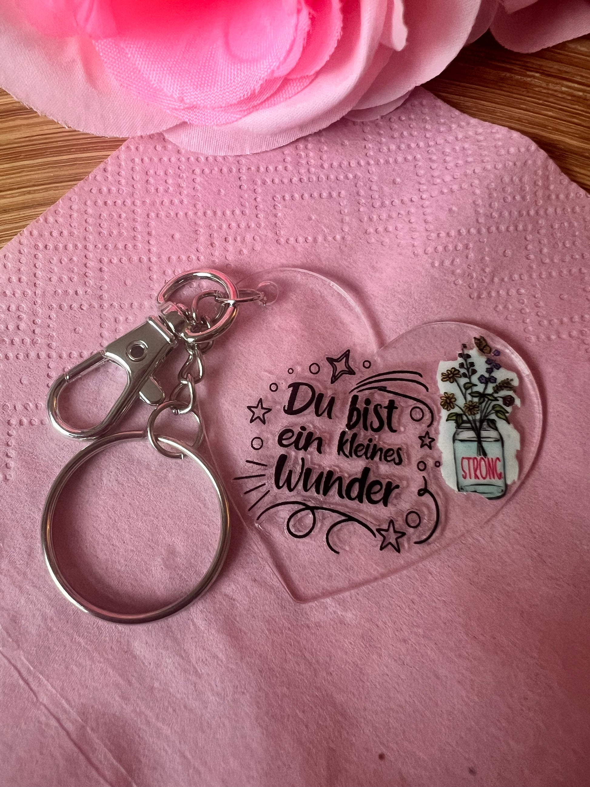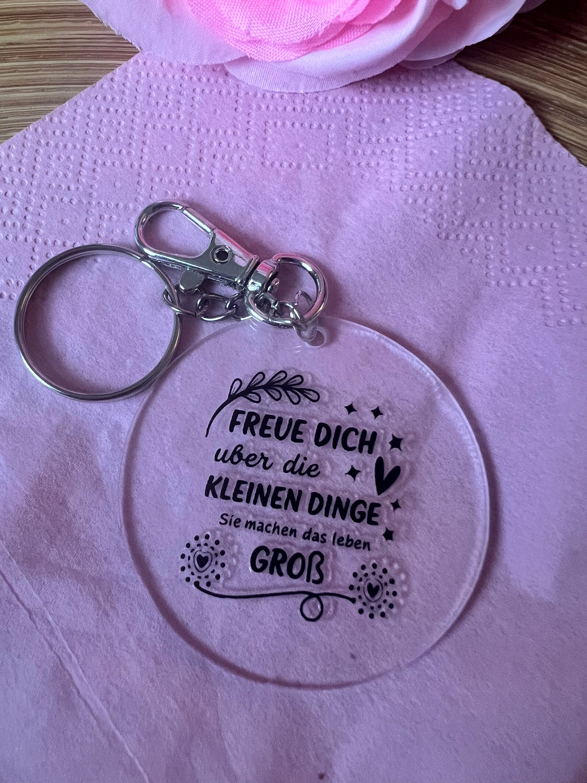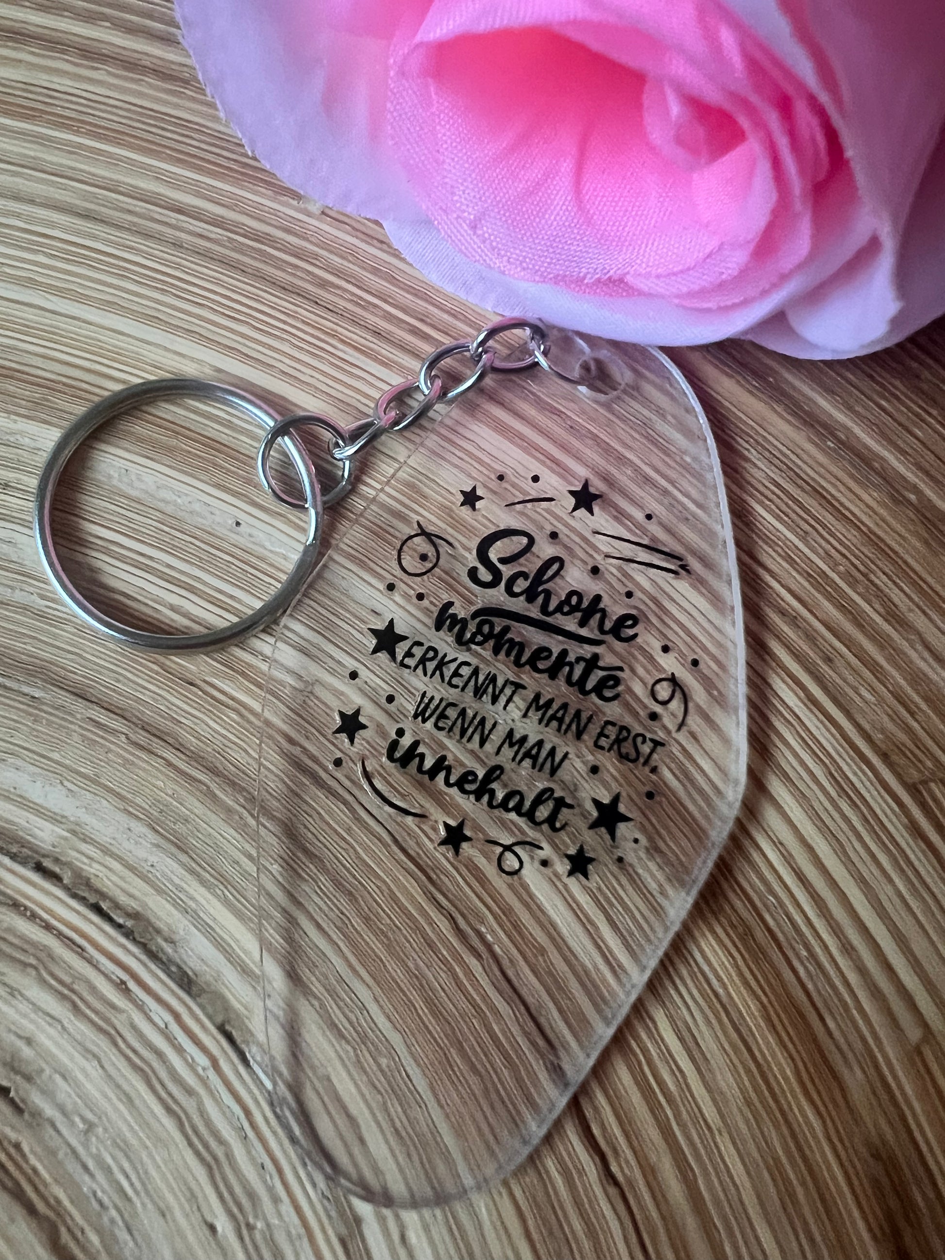 Ein kleiner Glücksbringer für jeden Tag: Unsere liebevoll gestalteten Schlüsselanhänger aus glasklarem, kratzfestem Plexiglas tragen motivierende oder humorvolle Sprüche, die einfach Freude machen – perfekt für die beste Freundin, die Mama, den Lieblingsmenschen oder als Reminder nur für dich selbst.