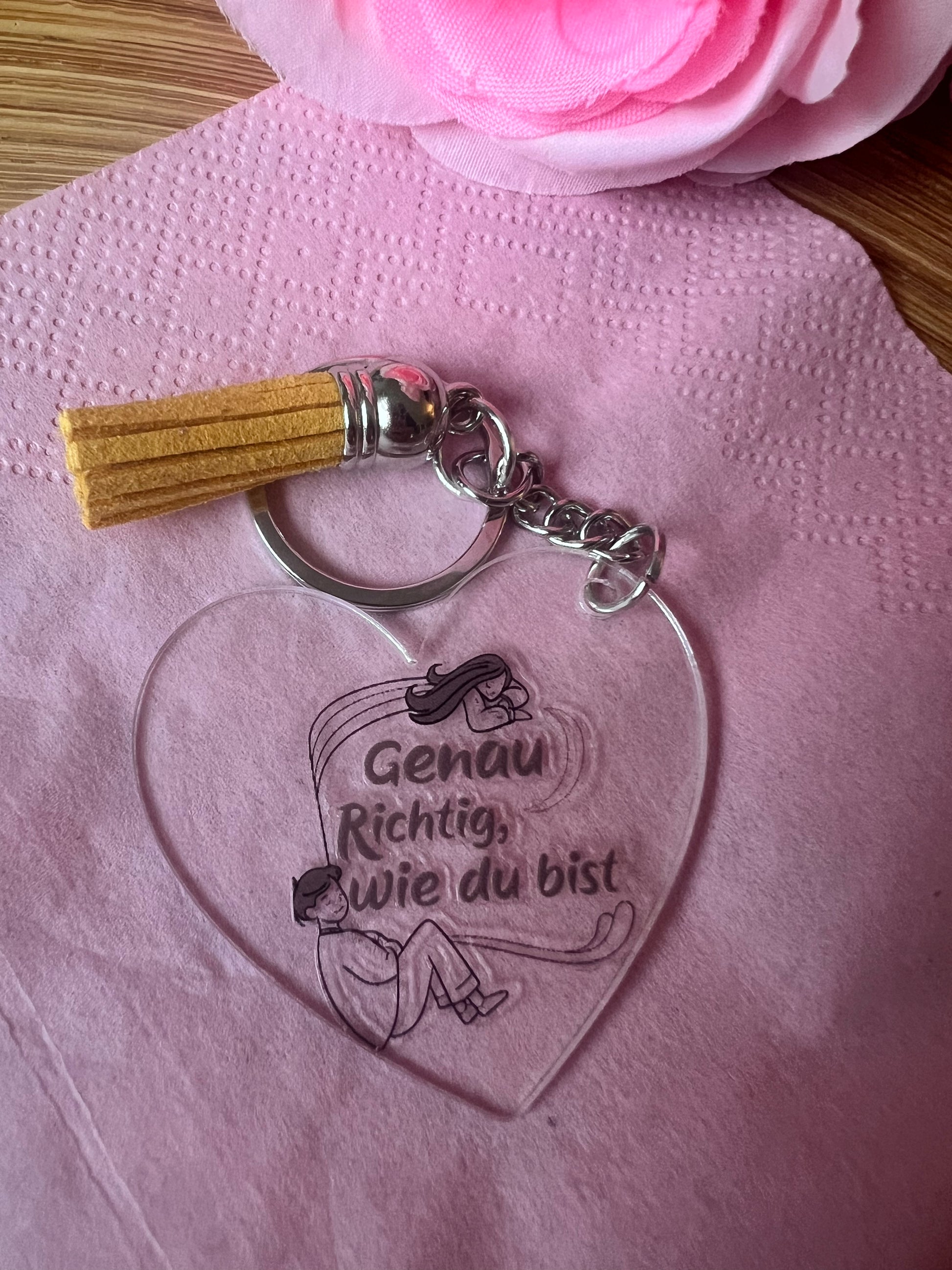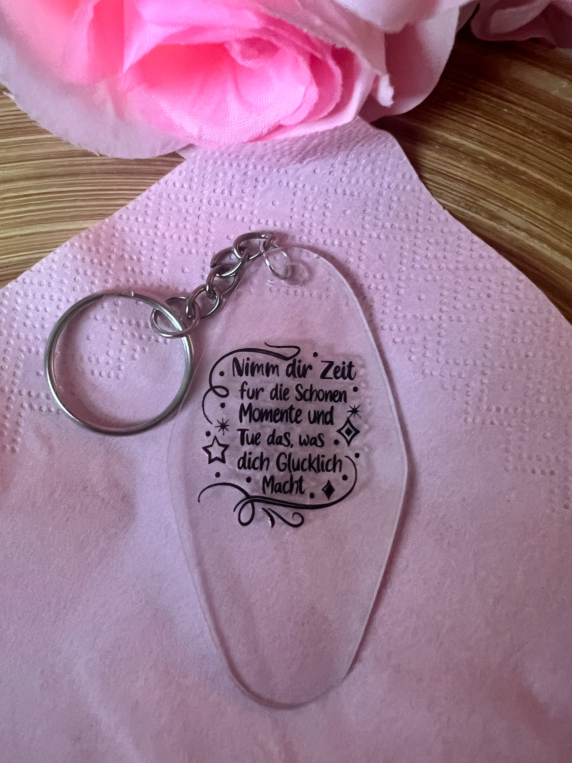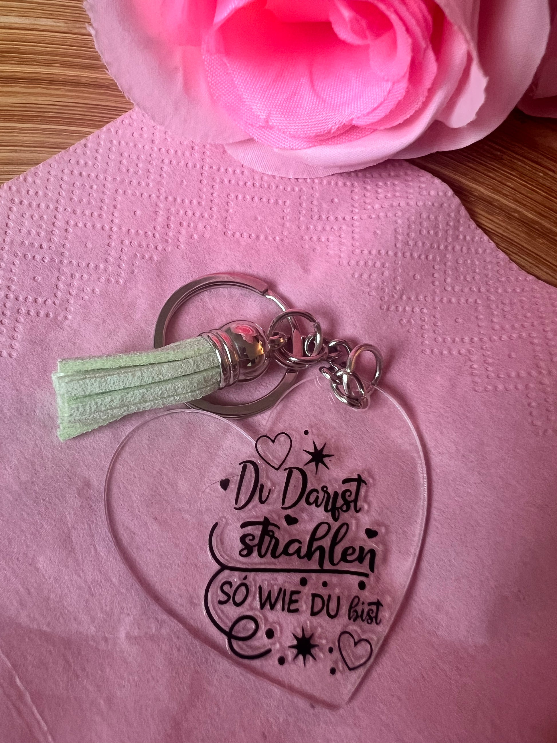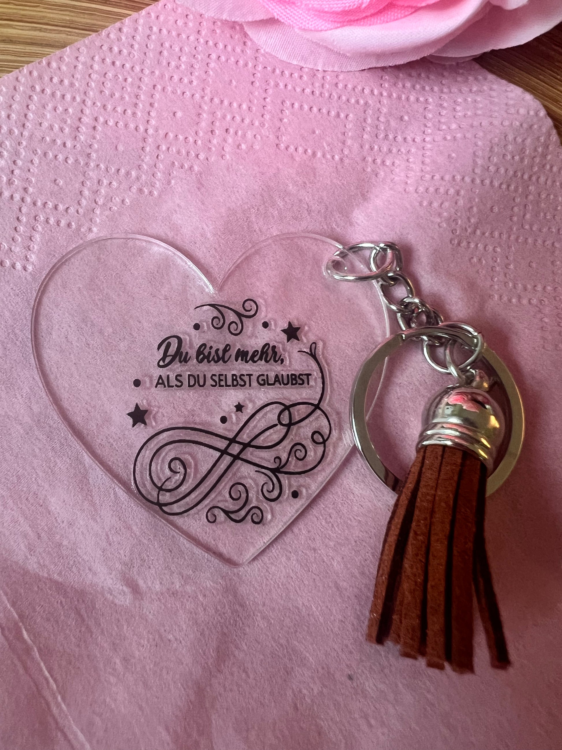 Herz- oder Hotel-Schlüsselanhänger aus Plexiglas mit inspirierendem Spruch